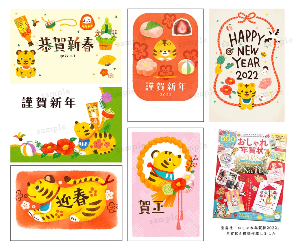 宝島社様より発売された「おしゃれ年賀状2022」にて年賀状イラスト6枚制作させていただきました 2021.10