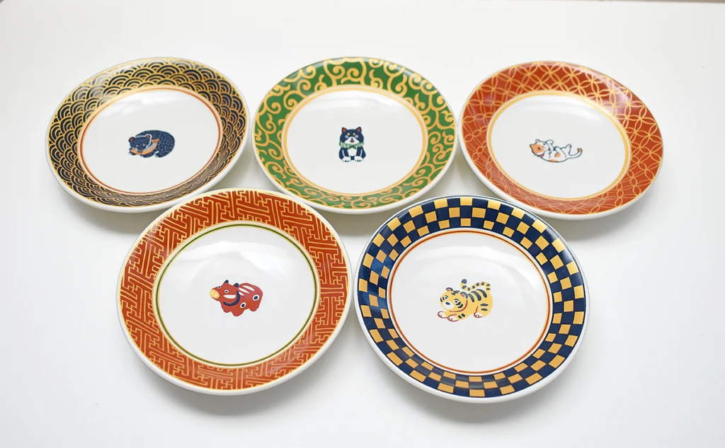 ヤマ吾陶器さまより販売された小皿「福寿皿」のイラストを担当させていただきました 2021.11